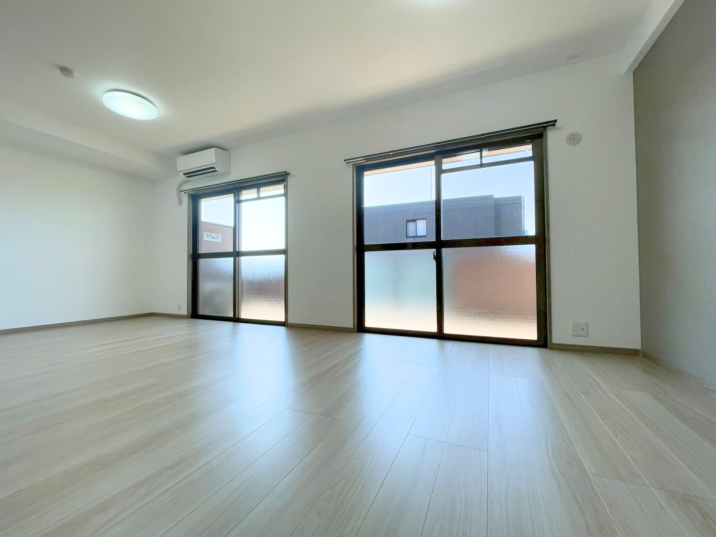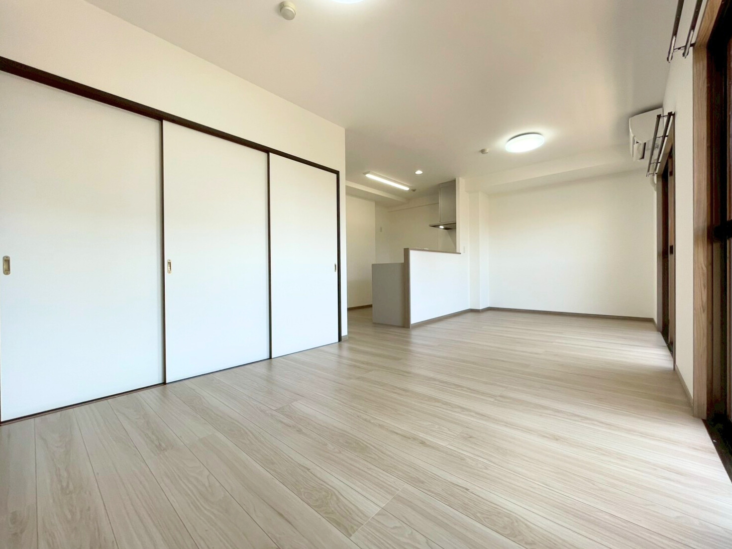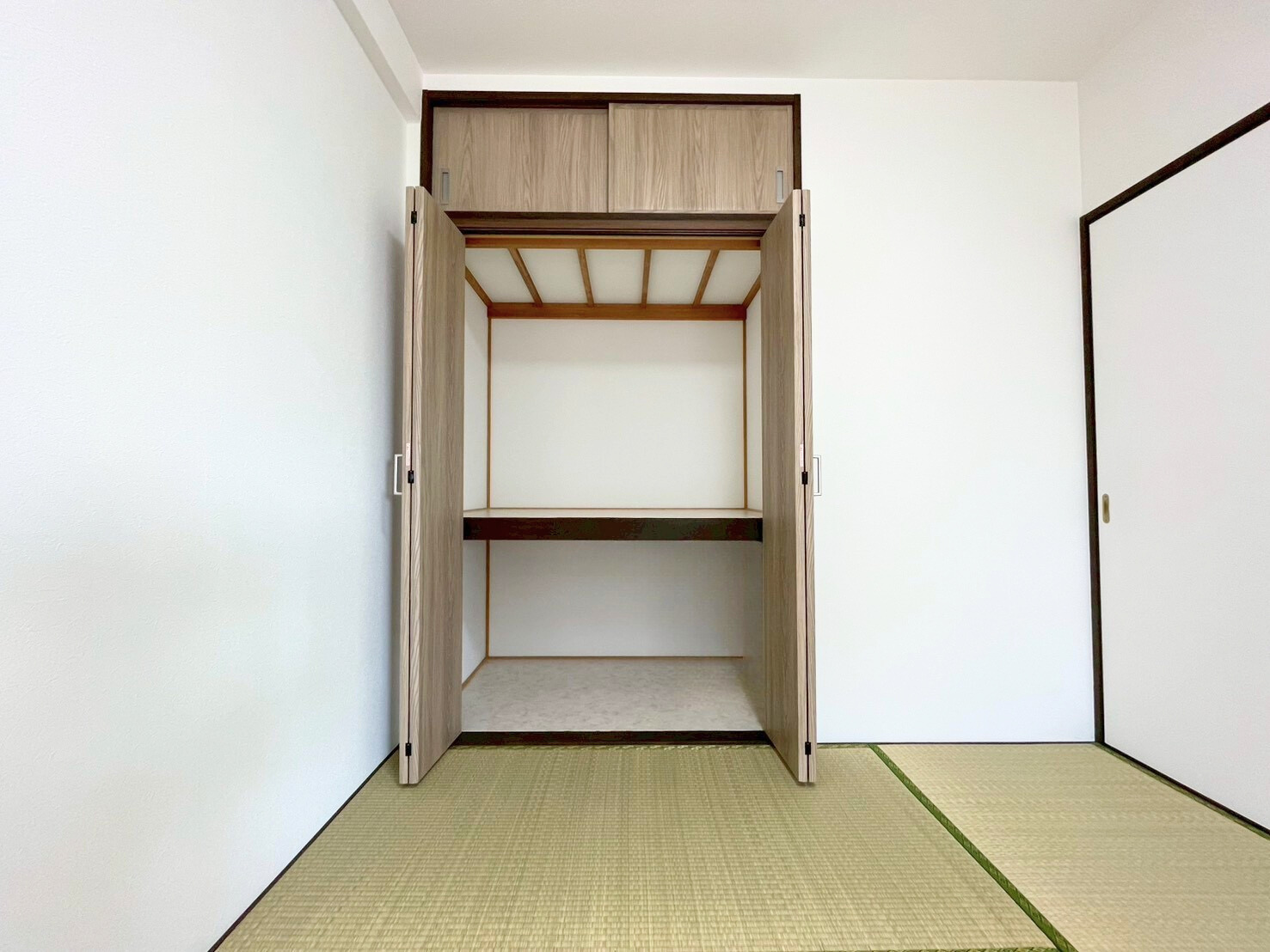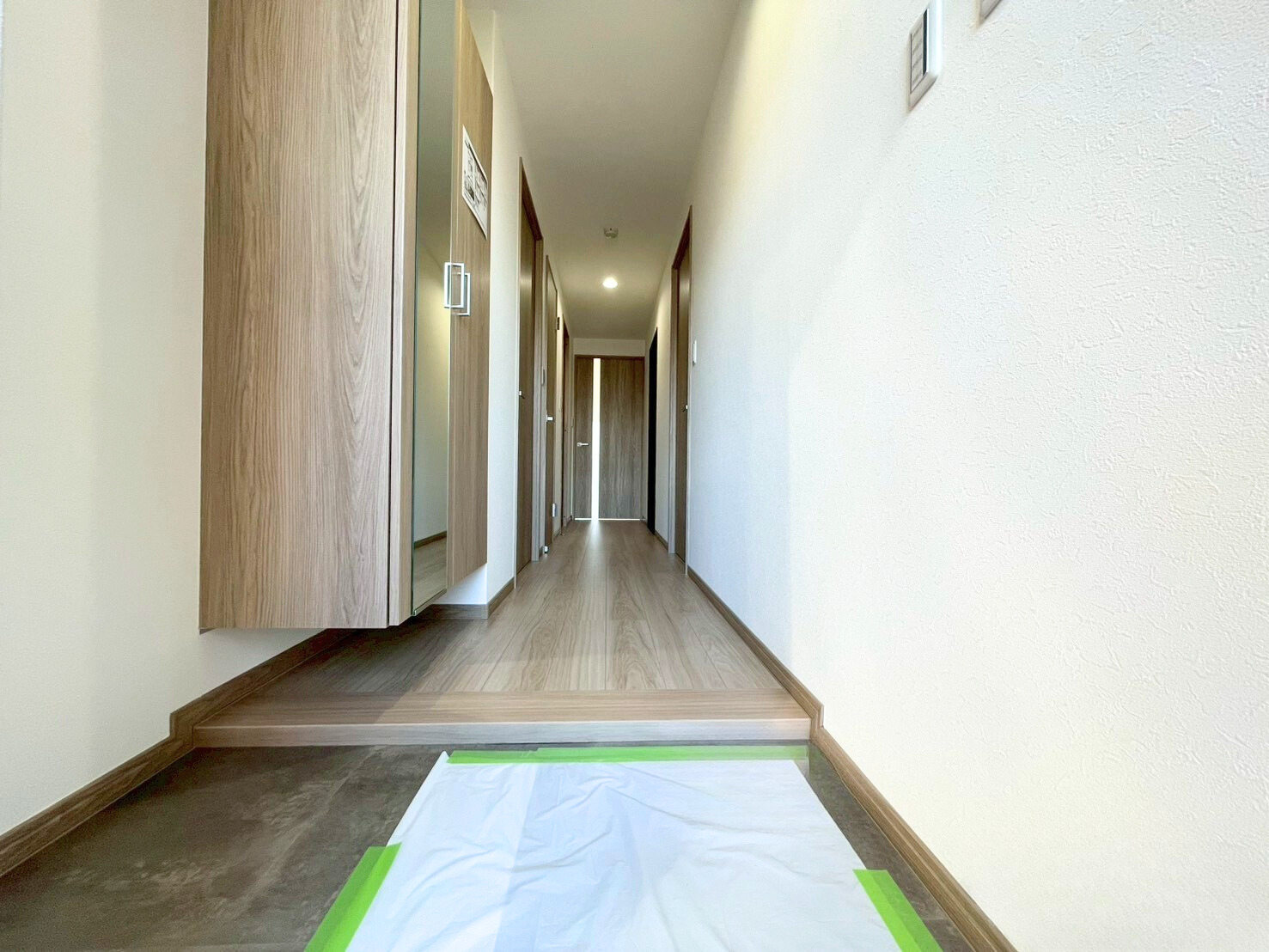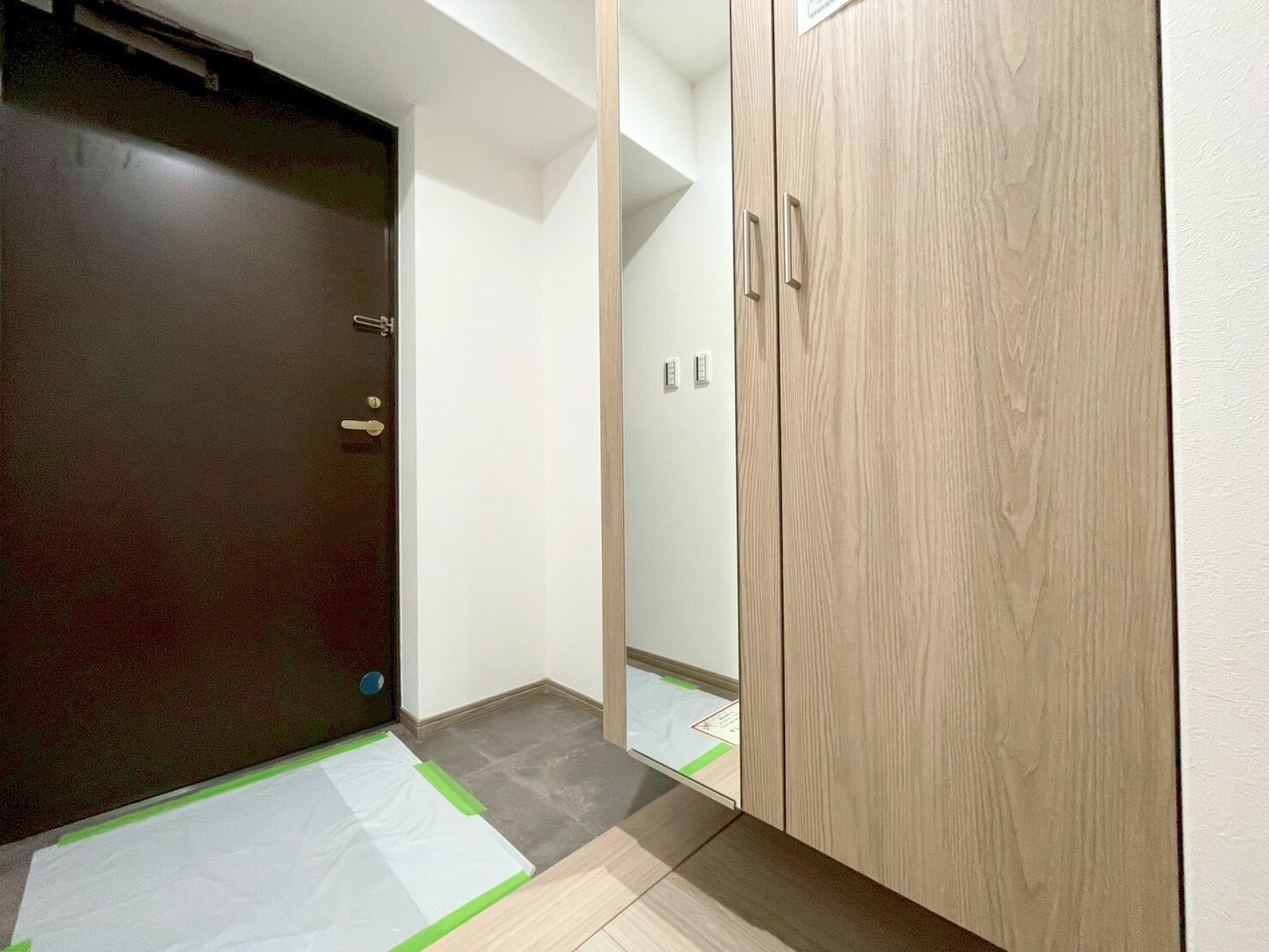 ■内装:2025年09月:クロス貼替・建具新規交換・ハウスクリーニング・フローリング上張り・鏡付シューズボックス新規・カーテンレール交換・畳表替