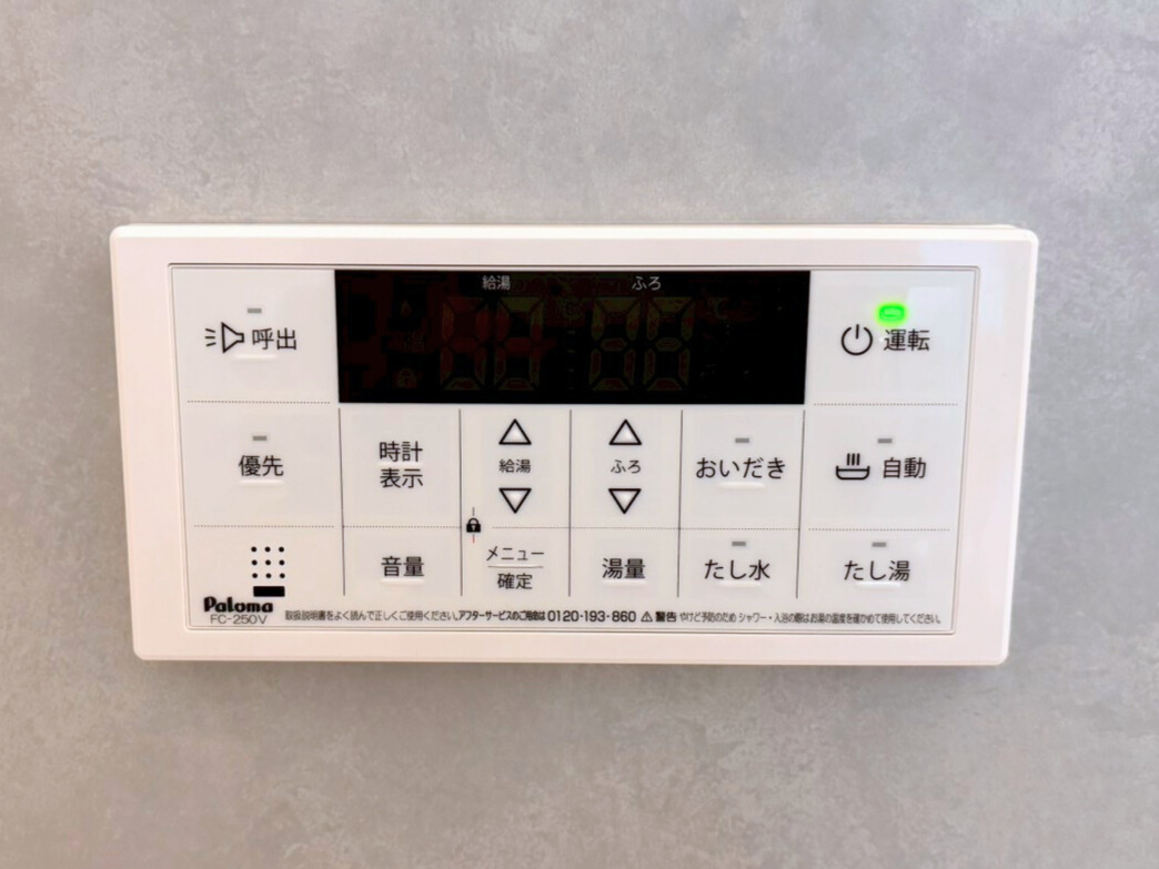 | 水回り | 給湯, 追い焚き, 洗髪洗面化粧台, シャワー, 浴室乾燥機, バス・トイレ別, 温水洗浄便座 |
